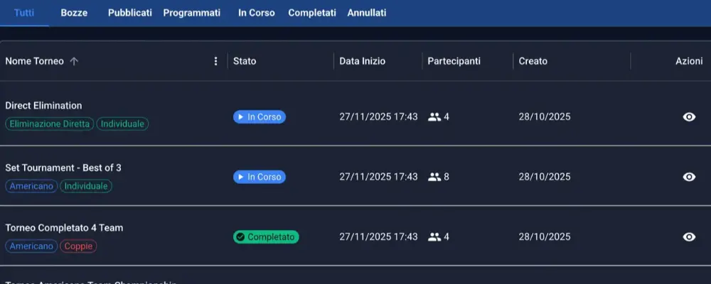 Tournament Manager è un centro di controllo per organizzare i tuoi tornei in modo moderno, dinamico e con un occhio puntato alla crescita dei tuoi clienti